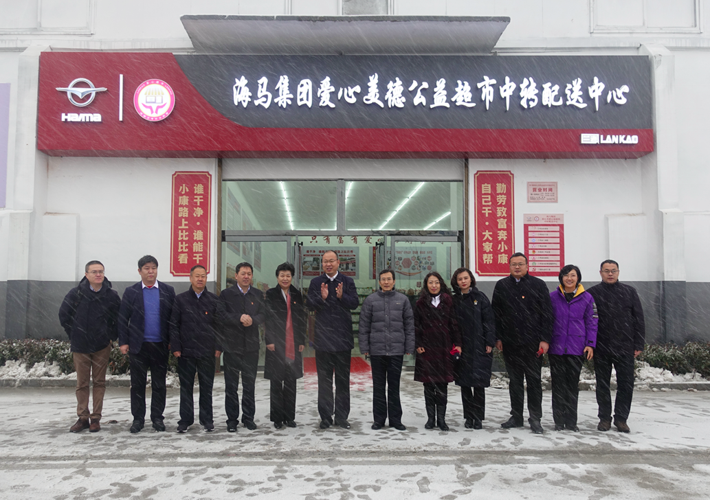 “今天是入冬最冷的一天,海马送来了最暖的暖流!”1月7日,大雪纷飞,由海马集团出资300万物资冠名捐建的海马集团爱心美德公益超市中转配送中心(以下简称“中心”)在兰考县建成揭牌。开封市委常委、兰考县委书记蔡松涛与海马集团党委书记王鸿儒为该中心揭牌。作为从兰考走出的企业家,海南省工商联主席、海马集团董事长景柱不忘对家乡扶贫事业的支持。该中心将创新采取“互联网+”社会扶贫的方法,线上众筹、线下发放,让扶贫更精准。