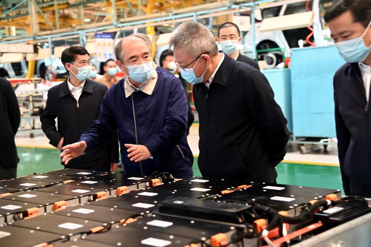 在景柱和卢国纲的陪同下,沈晓明一行参观了海南海马总装车间,了解海马新能源汽车和智能汽车生产情况,并到总装车间党群活动室,了解非公企业党建工作开展情况。