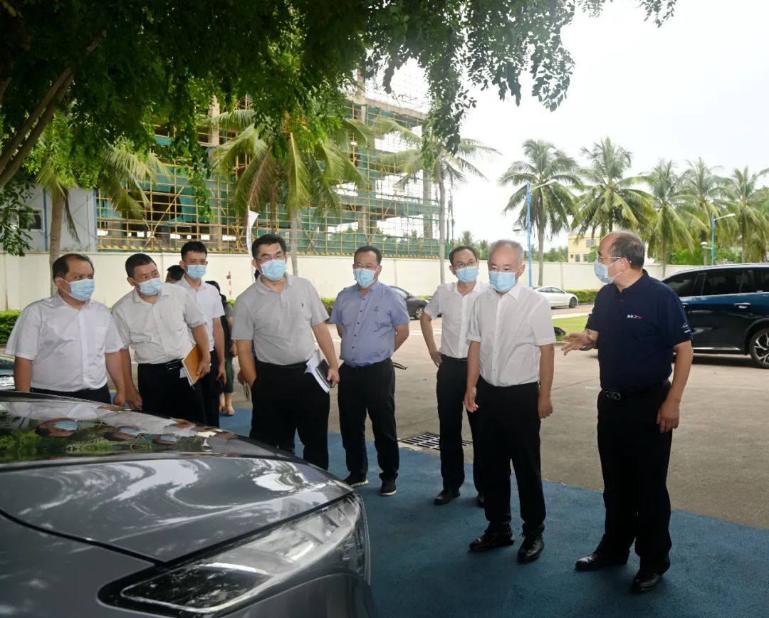 丁晖一行首先参观了海马纯电动汽车7X-E,了解7X-E的上市筹备情况。据了解,海马 7X-E 是海南自贸港生产的第一款智能纯电动汽车,具备大空间、长续航、高安全、 全智能 4 大特点, 续航里程 510km, 七座超大空间, 搭载宁德时代 NP 技术三元锂电池模组,电量 30%充至 80%仅需 27 分钟。该车还具有记忆泊车系统 HAVP,可实现 APA 自动泊车+RPA 遥控泊车+HAVP 记忆泊车辅助驾驶功能。海马 7X-E 在公务车出行、租赁出行、网约出行等具备优势。在详细询问了7X-E的性能配置价格后,丁晖表示将会全力支持海马新能源汽车销售。