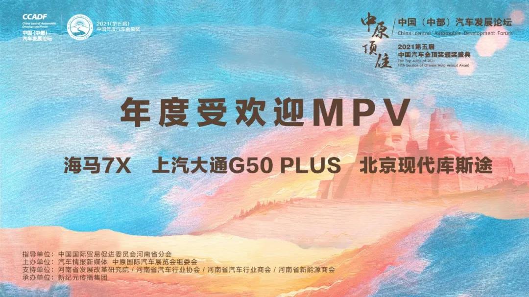 11月8日,汽车情报和中国汽车展览会组委会举办的中国(中部)汽车发展论坛暨2021(第五届)中国汽车金顶奖线上颁奖盛典在线上开幕。因疫情原因,原定于11月4日在线下举行的颁奖仪式转为线上开展,海马7X荣膺2021(第五届)中国汽车金顶奖“年度受欢迎MPV”奖项。