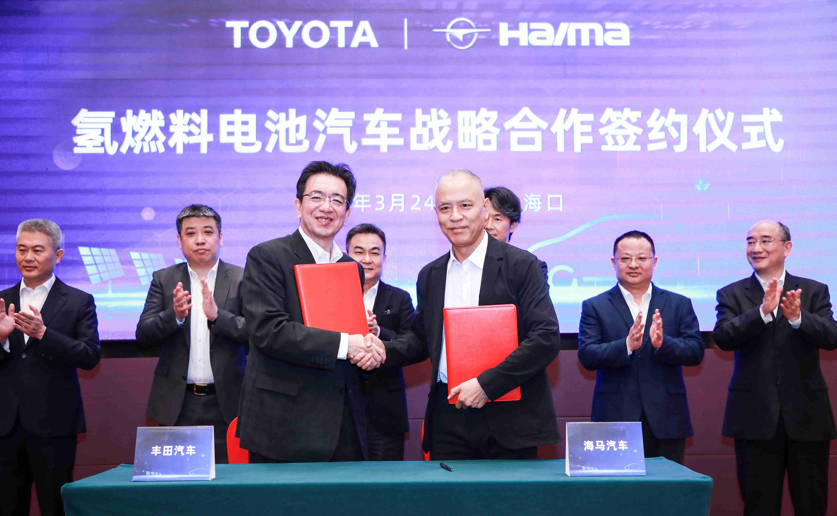 3月24日,丰田汽车公司执行董事、中国本部本部长、丰田汽车(中国)投资有限公司董事长上田达郎与海马汽车股份有限公司董事长景柱在海口签署战略合作协议。海南省副省长倪强,省商务厅厅长张斌,省工信厅厅长刘立武,海口市常务副市长邓立松等出席了签约仪式。