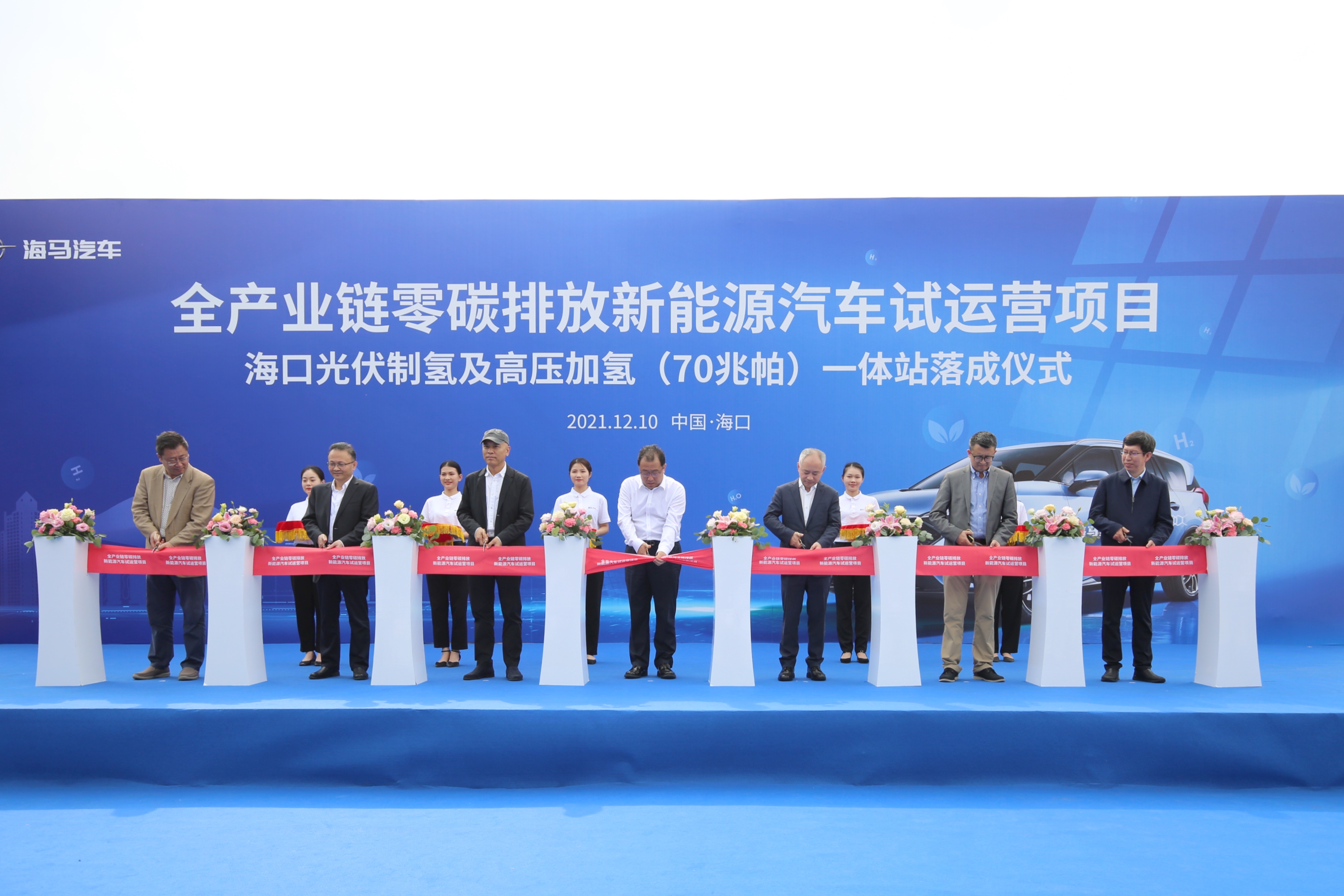 海南省政协副主席李国梁、海口市市长丁晖、海南省发改委副主任吕先志、海南省工信厅一级巡视员林敏、航天101研究所所长王成刚、海南发控总工程师李峰,海马汽车董事长景柱等共同为海口光伏制氢高压加氢一体站剪彩,李国梁、景柱为该站第一台车加氢。中国长江三峡集团海南分公司党委书记马晨光、中国华能集团海南分公司副总经理宋文贵、隆基氢能大中华区总裁寇建锋等嘉宾参加了落成仪式。