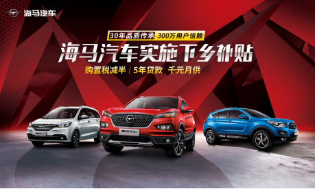 海马汽车借“汽车下乡”的契机,向广大用户推出更实惠的产品、更方便的金融服务和更贴心的产品服务,助力“汽车下乡”政策进入千家万户。