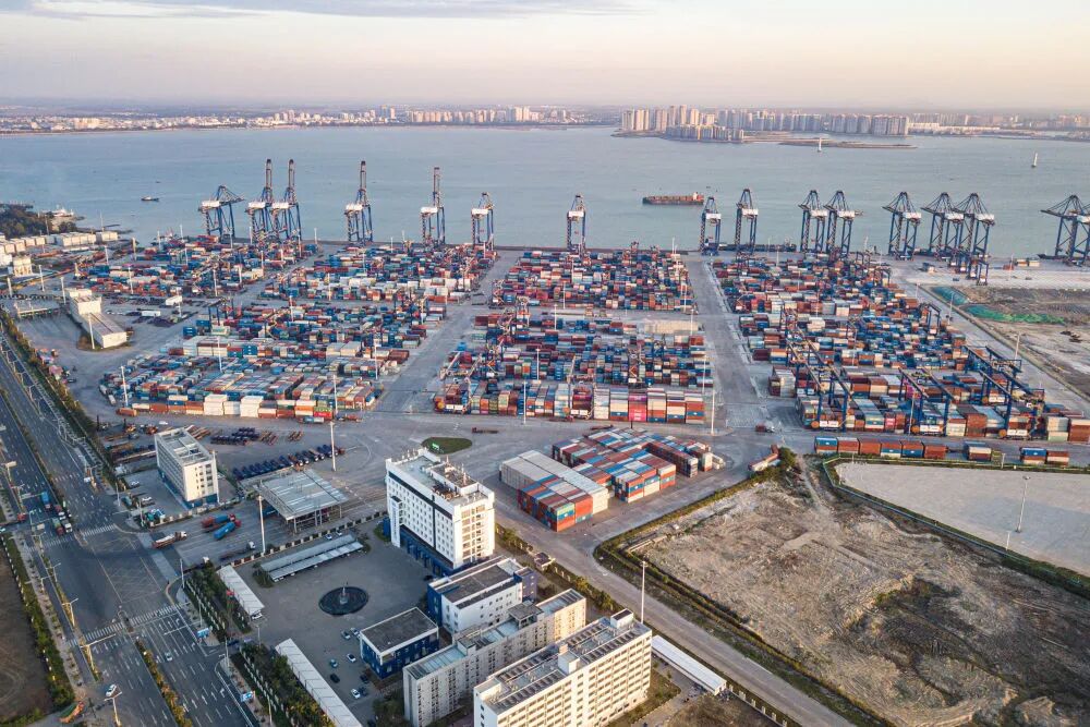 在海南自贸港重点园区——洋浦经济开发区拍摄的洋浦国际集装箱码头(无人机照片,11月21日摄)。 新华社记者 蒲晓旭 摄