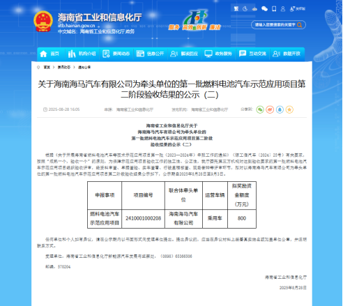 作为海南自贸港唯一具有传统燃油车和新能源汽车生产资质的车企,海马汽车是当前海南发展氢能汽车的“链主”企业。海马汽车自2013年开始投资研发氢能汽车,是中国最早开展氢能乘用车研发的整车企业之一。据悉,示范运营项目将持续开展并不断扩大规模和应用场景,进一步展现海南自贸港全产业链零碳排放汽车生态体项目的实践成果。